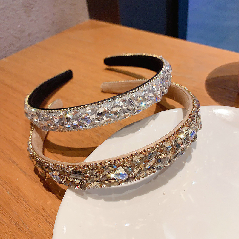 絶妙な輝くダイヤモンドヘッドバンド 2025 春と夏の新しいスタイルフルダイヤモンドクリスタル女性の高頭滑り止めヘッドバンド気質ライト高級帽子