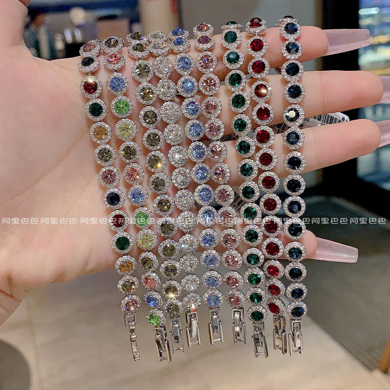 シンプルなヘビーデューティラウンドカラークリスタルジルコンブレスレット 2025 新しい絶妙なインターネットセレブ気質ハイエンドブレスレット女性のための