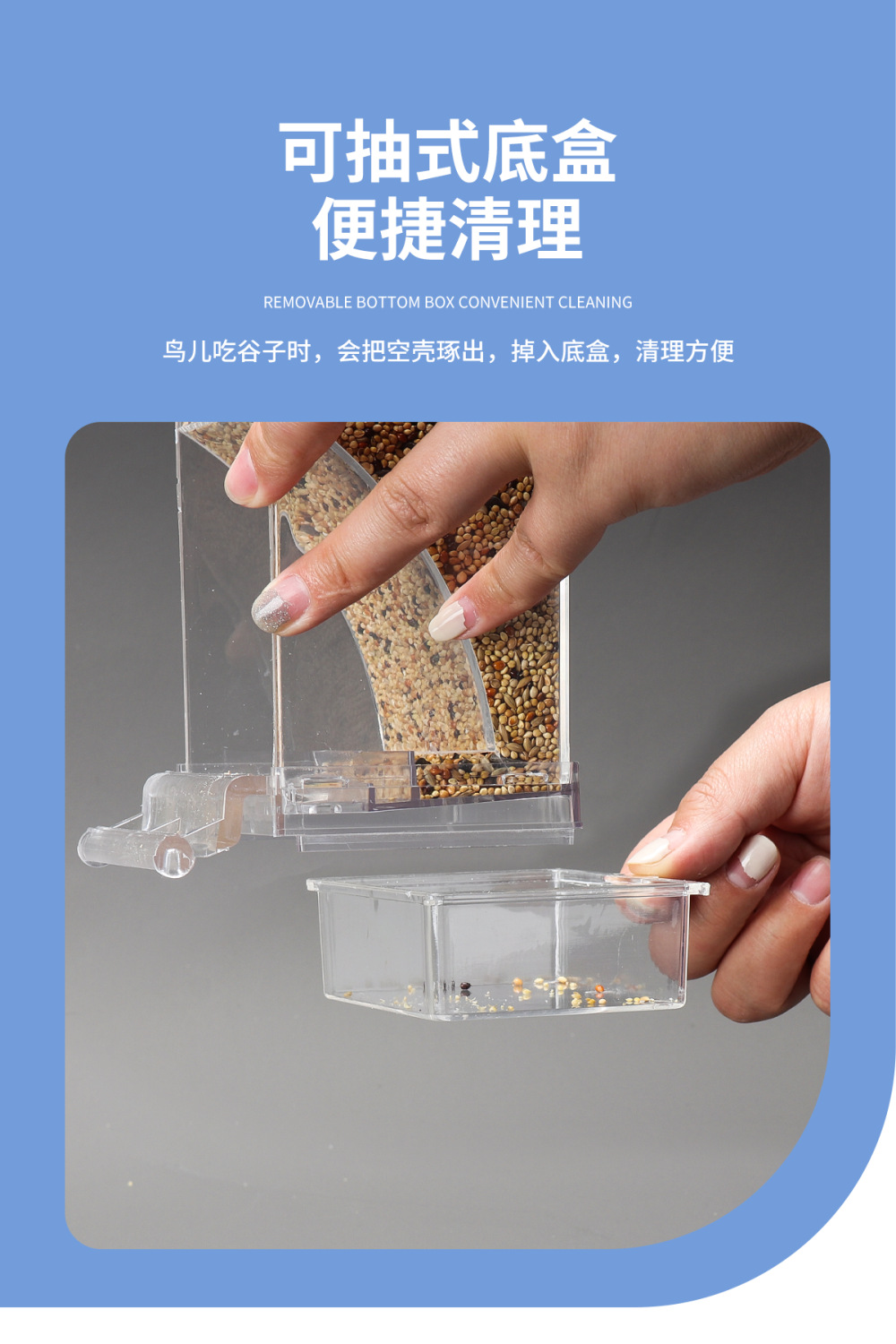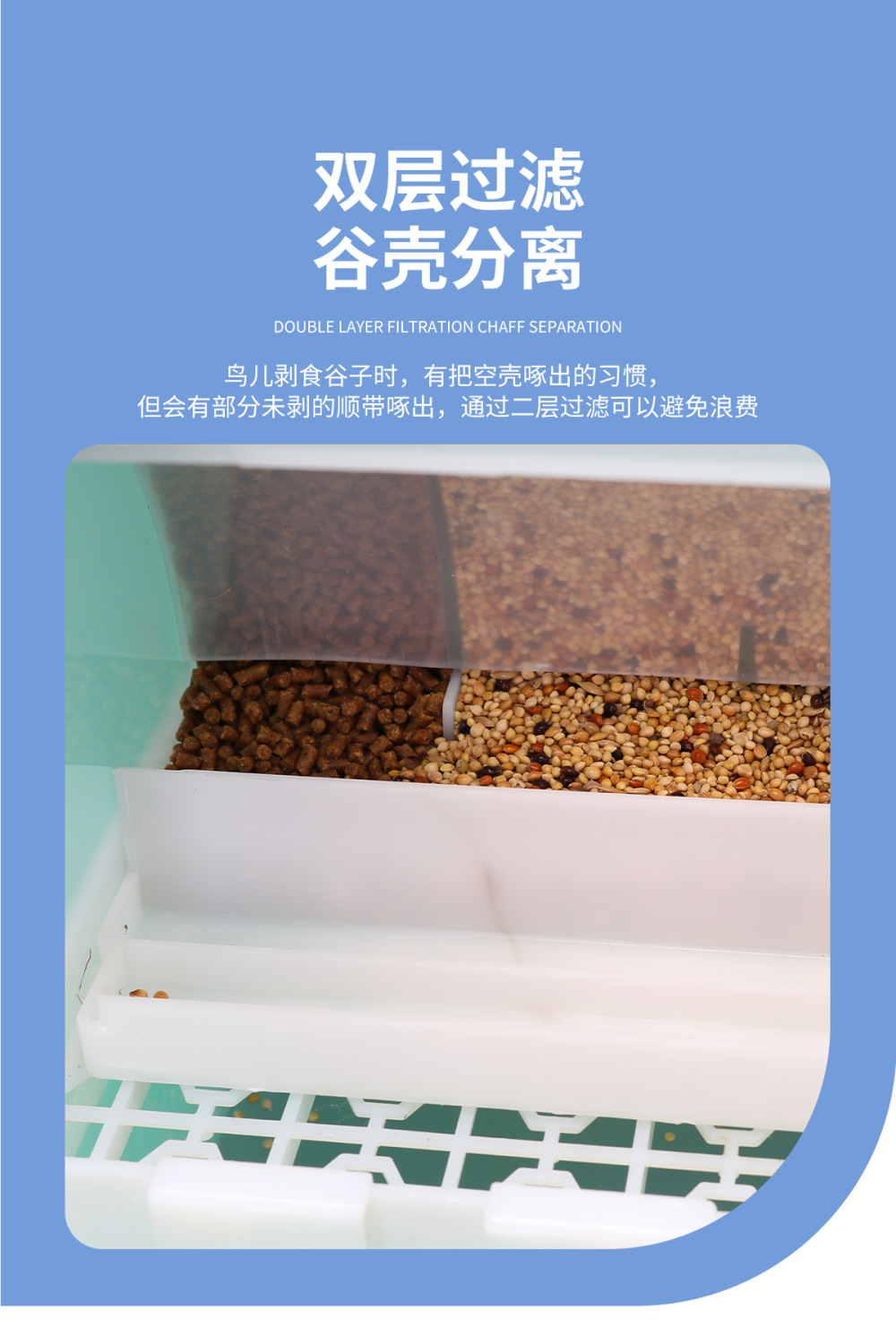 鸟食盒鹦鹉喂食器自动下料器谷壳分离鸟笼防溅撒八哥玄凤专用悬挂