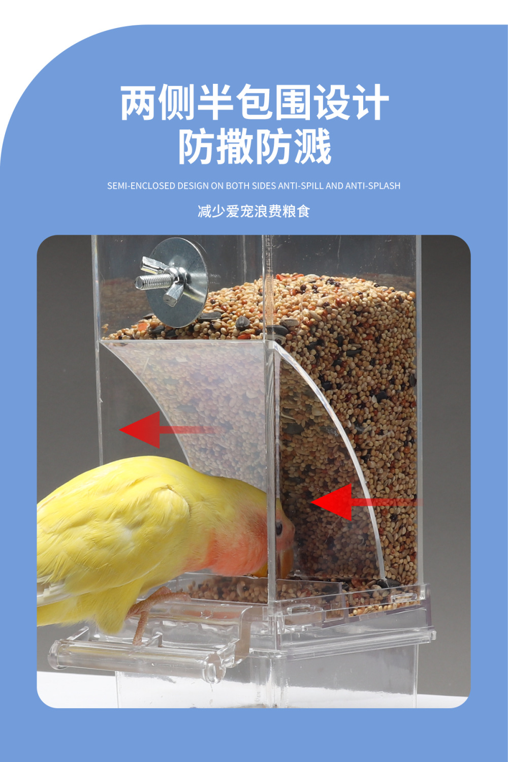 虎皮オウム自動給餌器防撒防飛鳥用食箱食槽下料器牡丹給餌器鳥用品