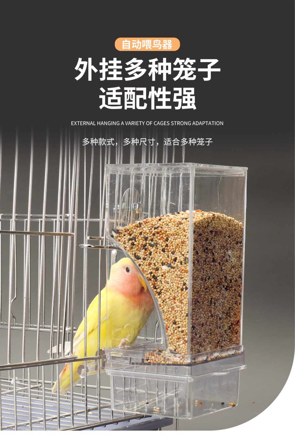 虎皮牡丹玄鳳オウム下料器透明自動給餌器飛散防止鳥用品外掛鳥食箱
