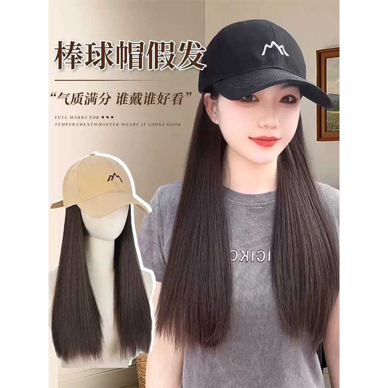 假发帽子一体女2025春夏新款长卷发刺绣棒球戴帽子假发全头套