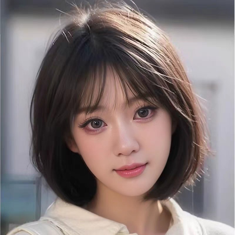 假发女发尾外翻短发卷空气齐刘海减龄波波头仿真假发女新款全头套