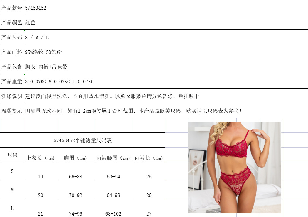 速売通趣味下着セットレース三点式調節可能肩ひも透視靴下下着三点セットスポット