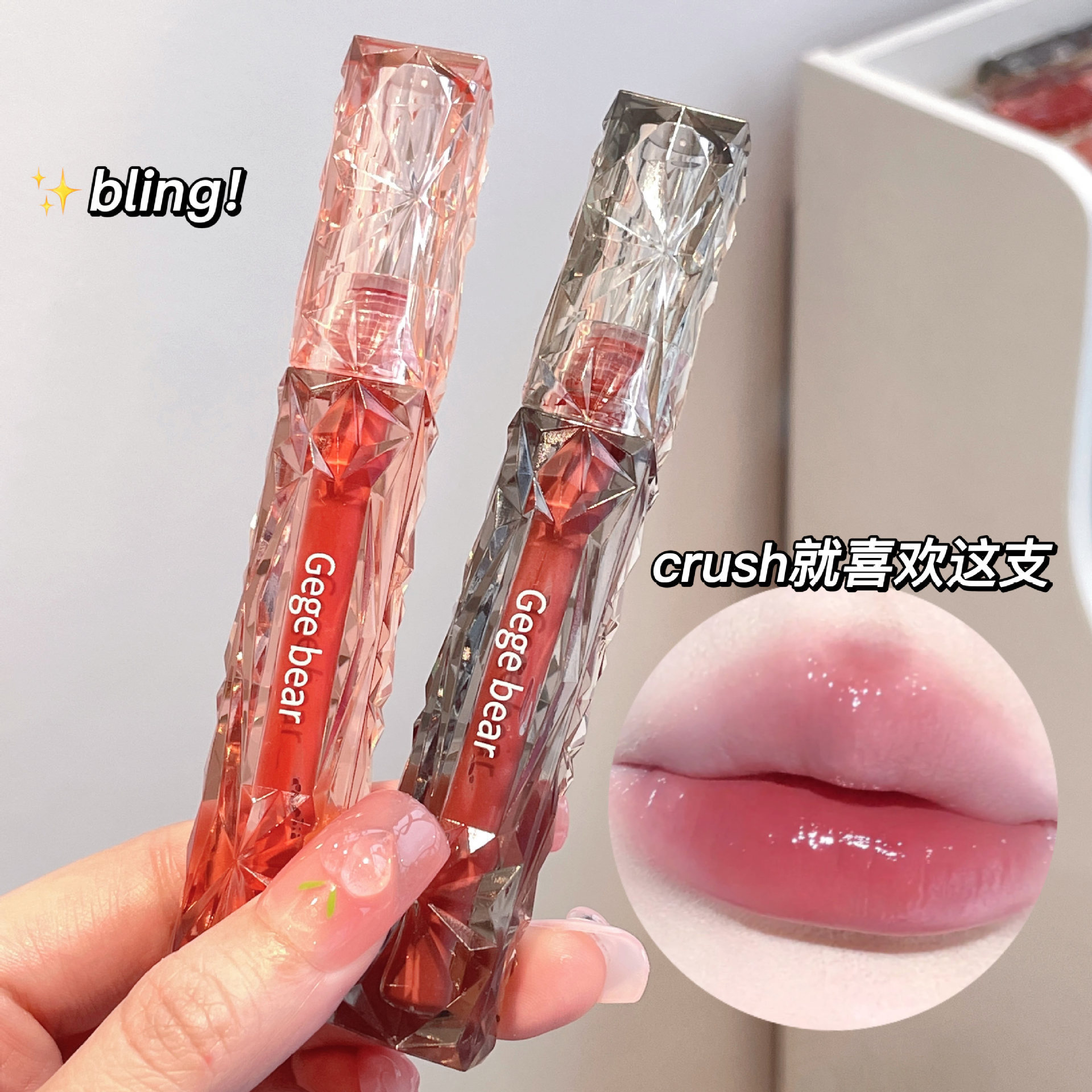 Gege bear結晶透ドリル光鏡面唇釉薬水光ブツブツ唇純欲風偽素顔白平価口紅