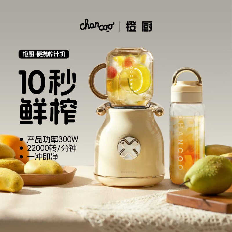 橙厨CHANCOO 榨汁机家用水果小型便携榨汁奶昔双杯复古设计高颜值