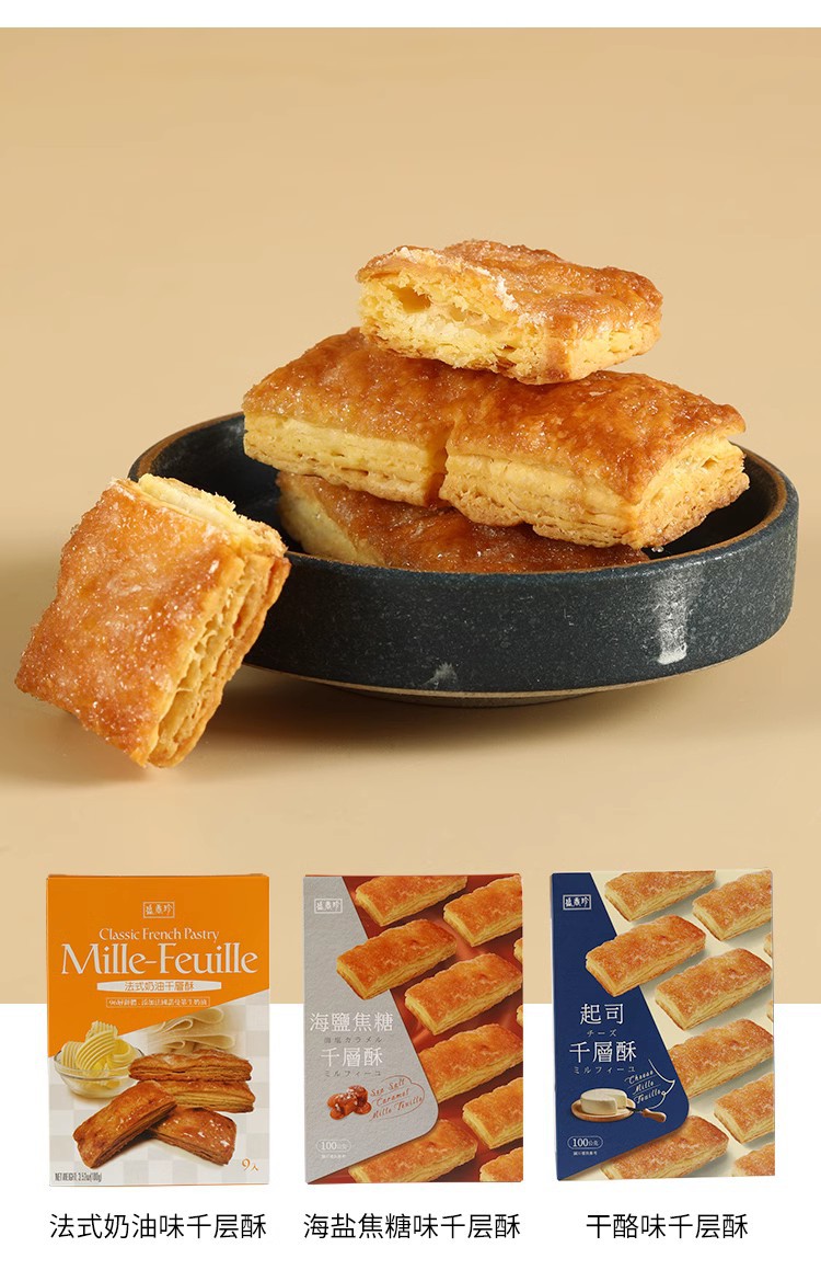 台湾食品盛香珍チーズ千層ショートニング海塩キャラメル千層ショートニングフランスクリーム松塔箱入りティースポット