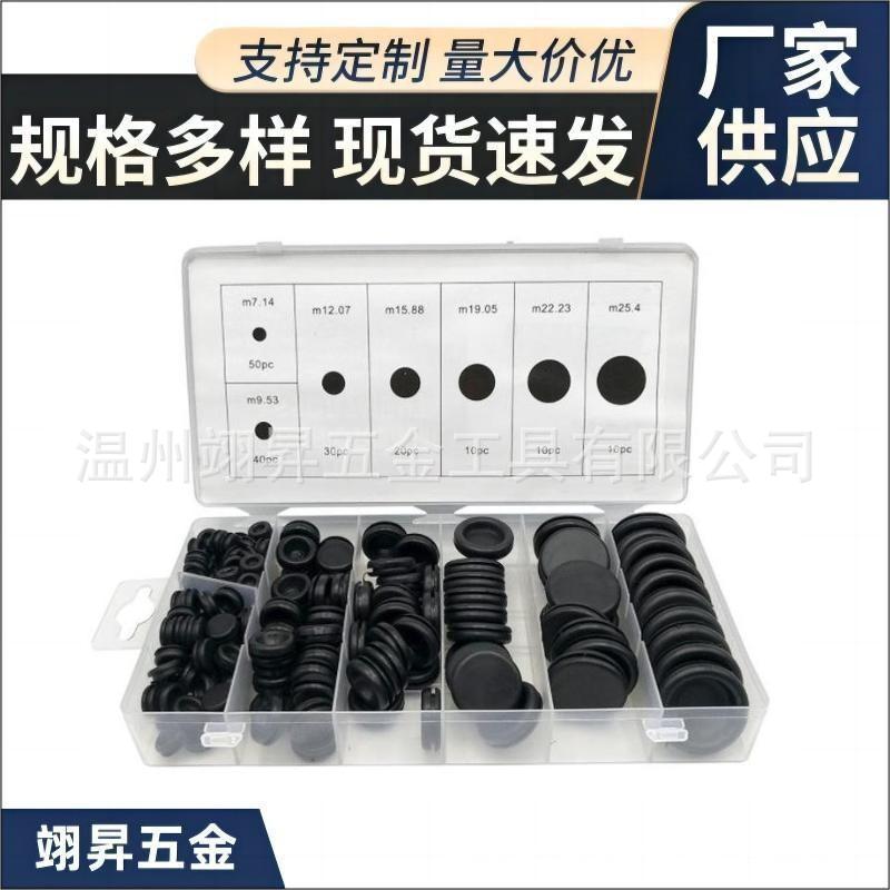 170PCS箱入り黒色保護コイル保護リング保護カバー片面リング糸通しセットシールo型