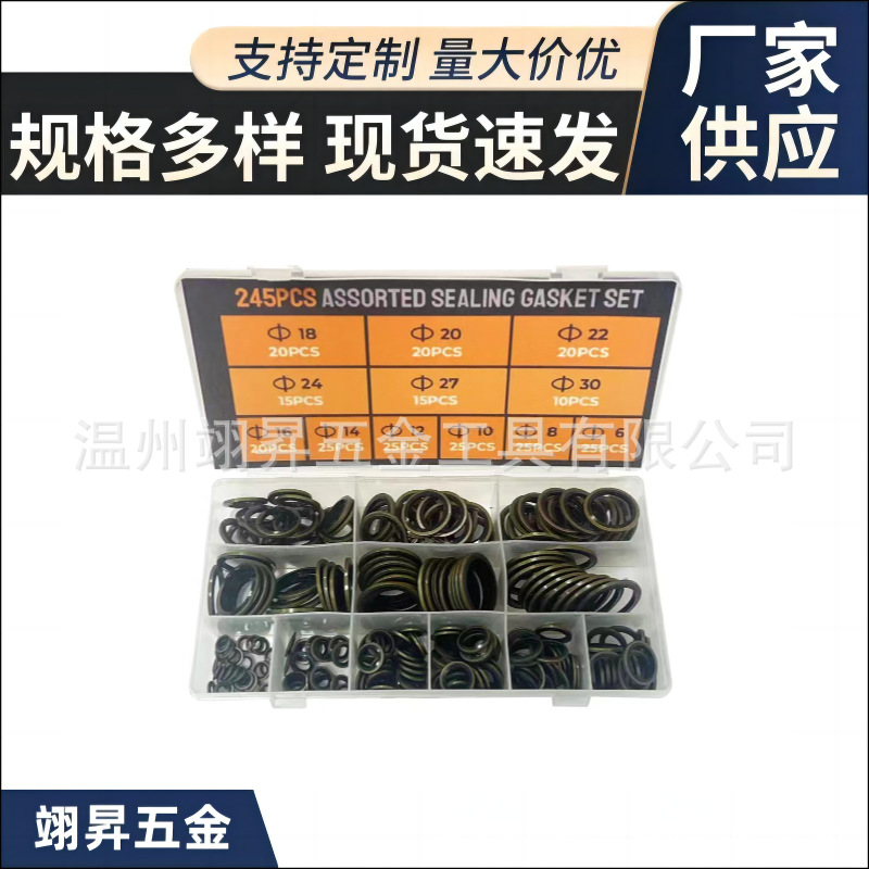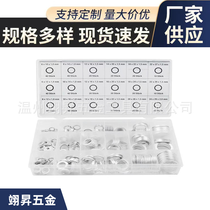 クロスボーダー紫銅ガスケット200pcs銅ガスケット組合せCopperwasher紫銅平ガスケット箱入りセットケース
