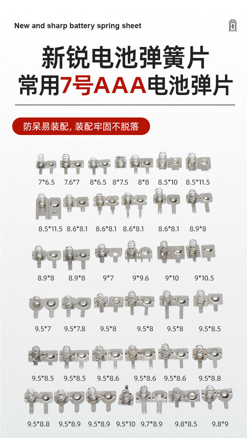 電池接触片5号7号電池バネ片ステンレスプレス部品弾性板ボタン電池弾性板
