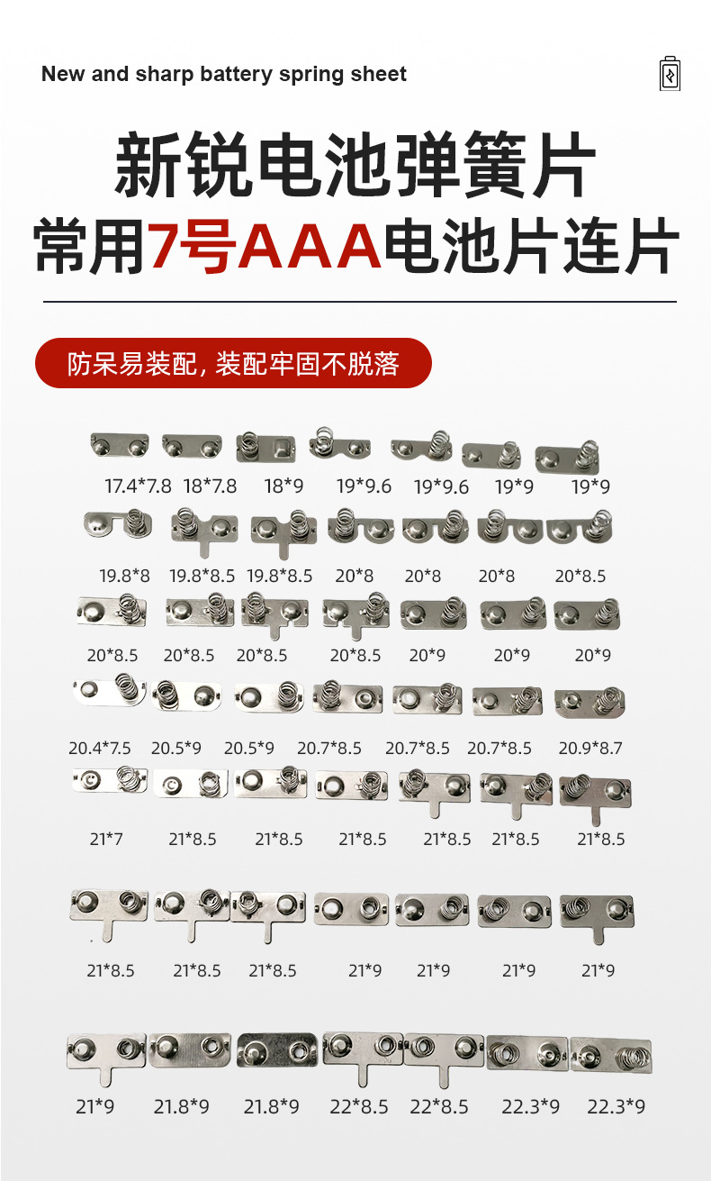 メーカーカスタム18650電池シートaa aaaスプリングシート5号7号正負極導電接触接続シート