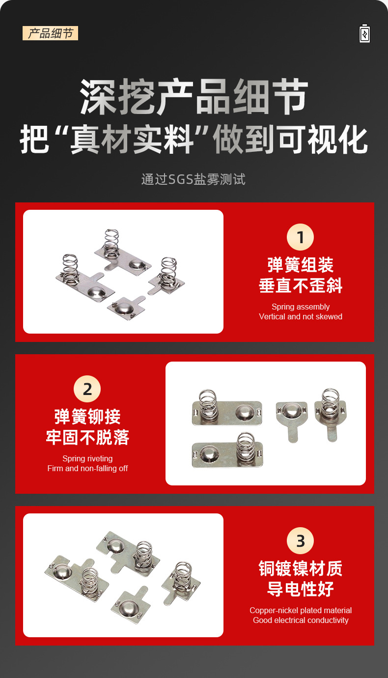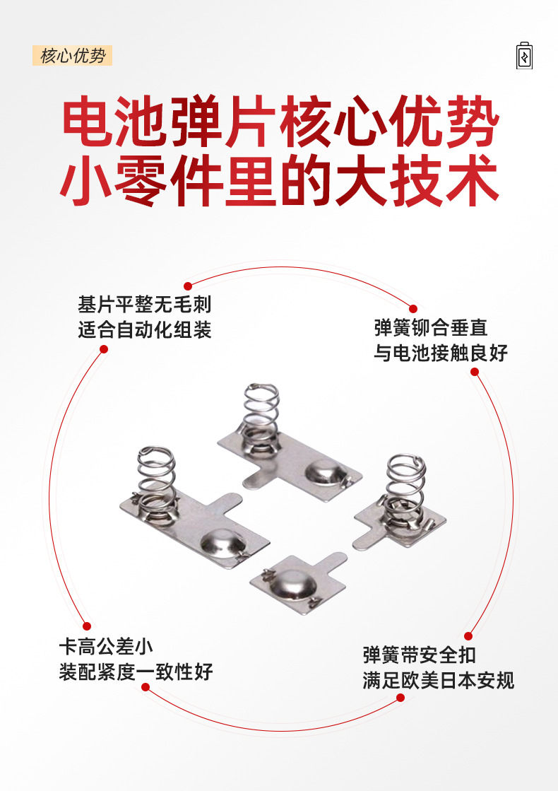 標準18650電池片直列スプリング片電池箱接触弾片正負極金属片