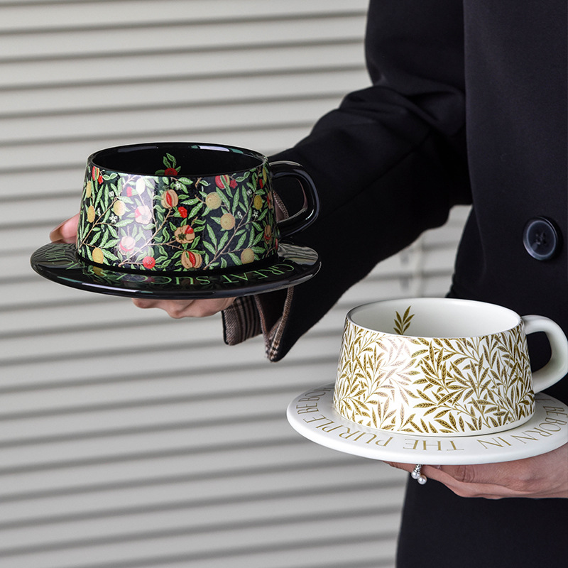 レトロなデザインの白黒オリジナル陶磁器コーヒーカップのお菓子皿