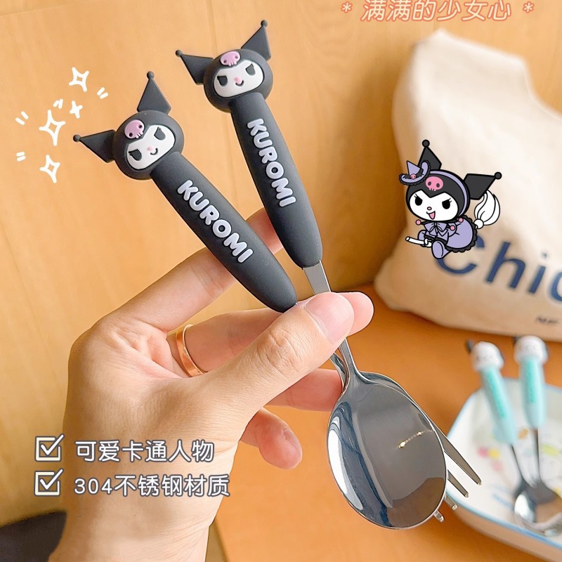 サンリオ専用スプーン304ステンレスフォークスプーン韓国式食品級携帯ins高颜値厚厚円