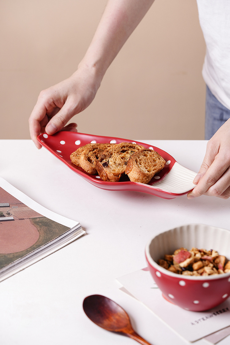 赤いキノコセラミックプレート皿プレートホーム2025新しい食器高価値アフタヌーンティーデザートプレートトレイ