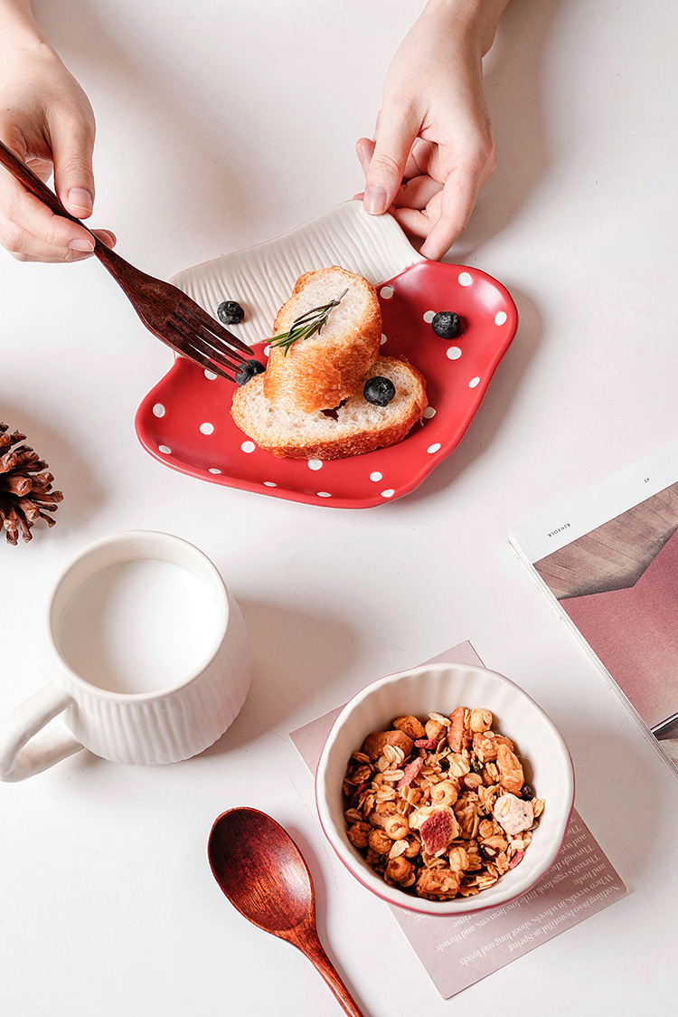 Ins風少女心高颜値陶磁器赤キノコ食器カップ菓子皿ご飯碗サラダ碗スプーン