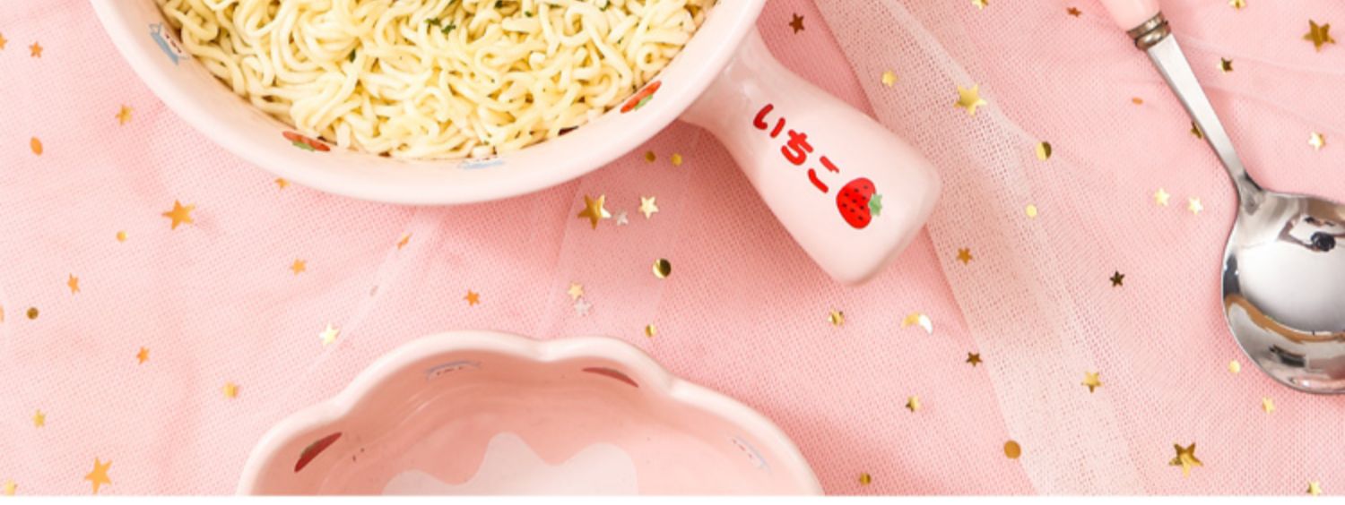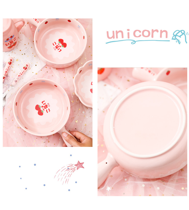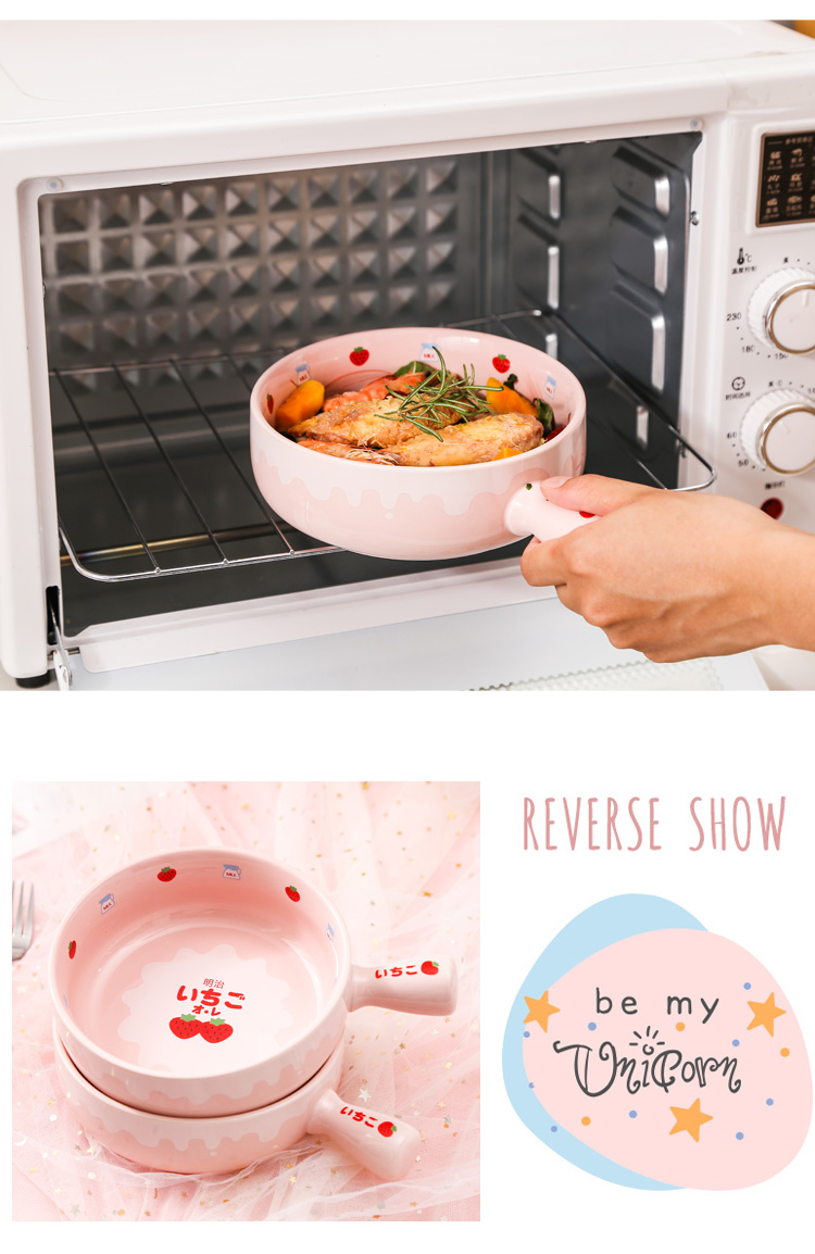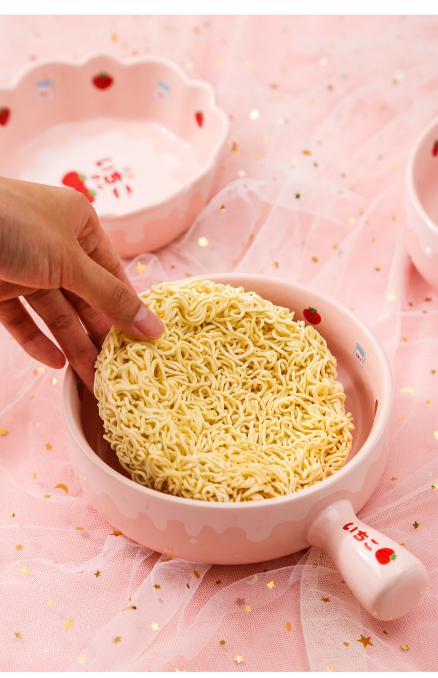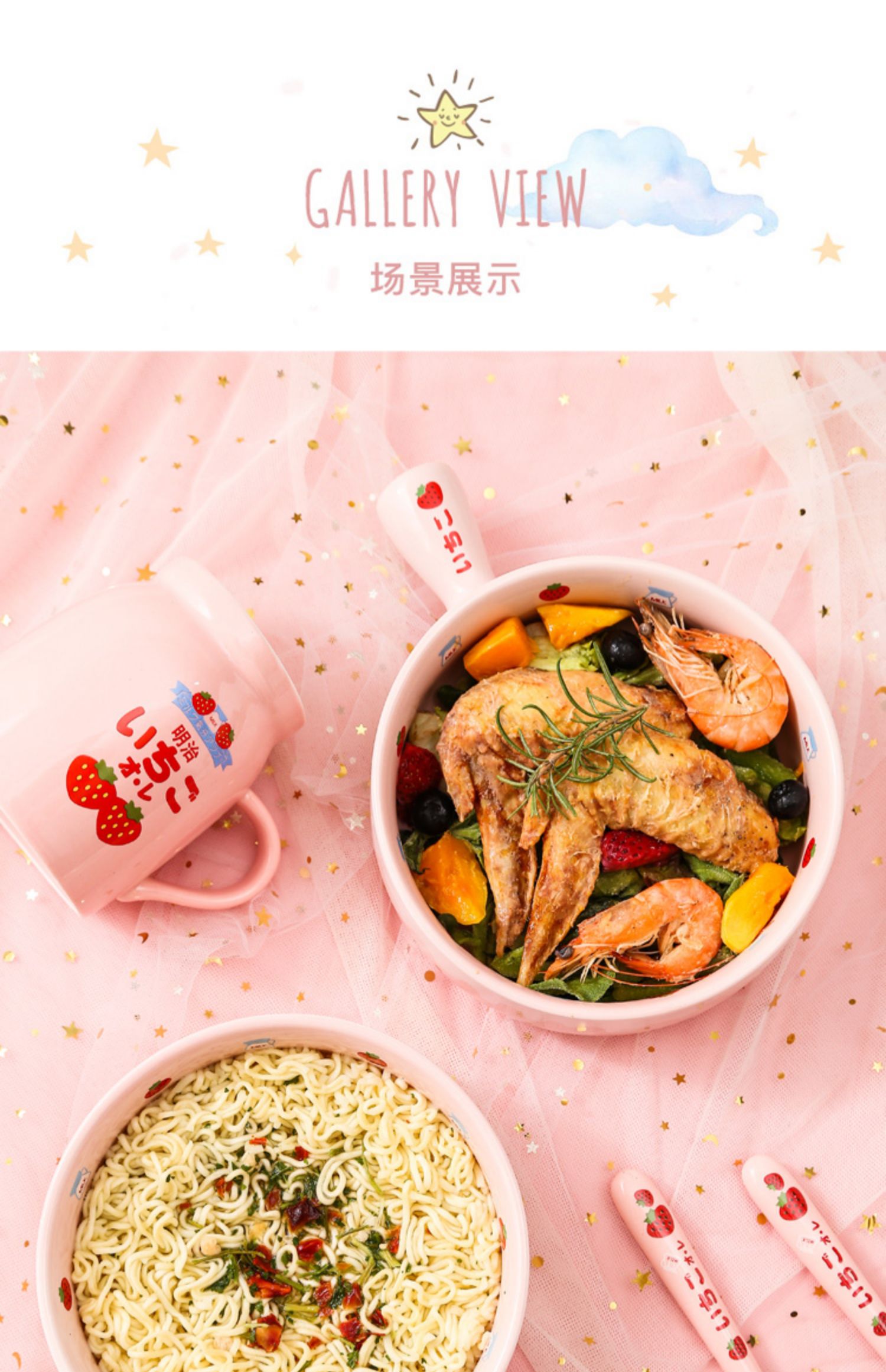 9worピンク明治イチゴ可爱い少女セラミック泡麺ボウルハンドル付き家庭用焼きボウル学生シリアルボウル砂