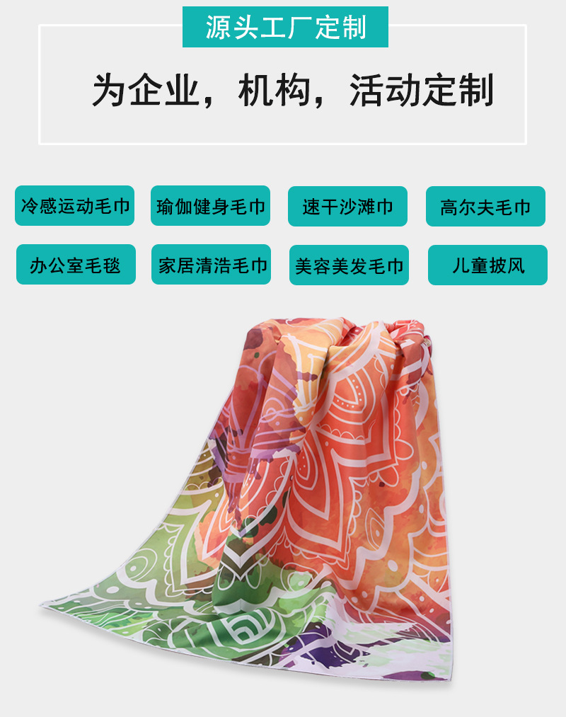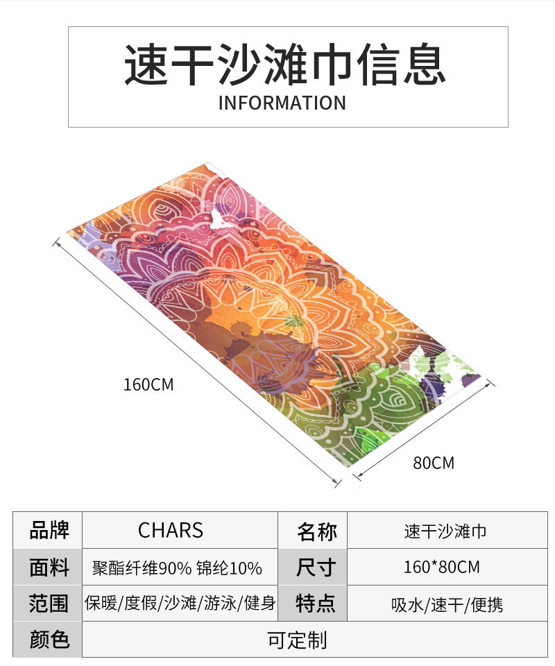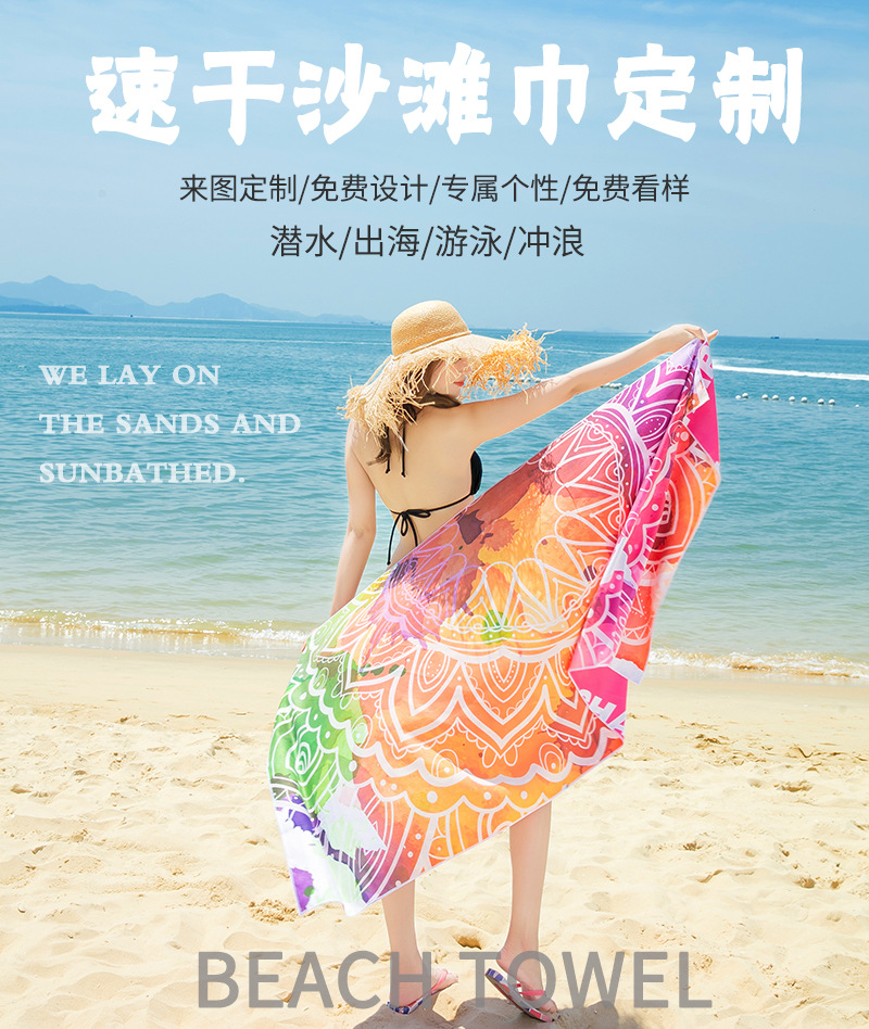 メーカー両面パイル速干バスタオルデジタル热移动水泳吸水可収纳用品バックルプリントビーチタオル