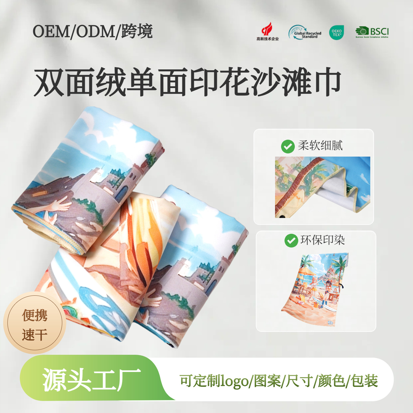 跨境双面绒单面印花沙滩巾超细纤维速干吸水双面绒海边防晒沙滩巾