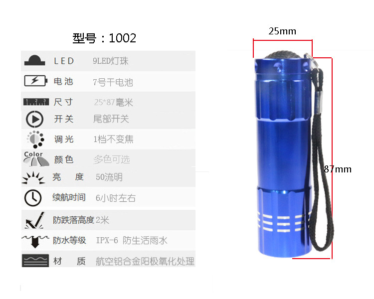 メーカー直販起爆金9led強光ミニ携帯懐中電灯アルミ合金プレゼント小懐中電灯小九灯懐中電灯
