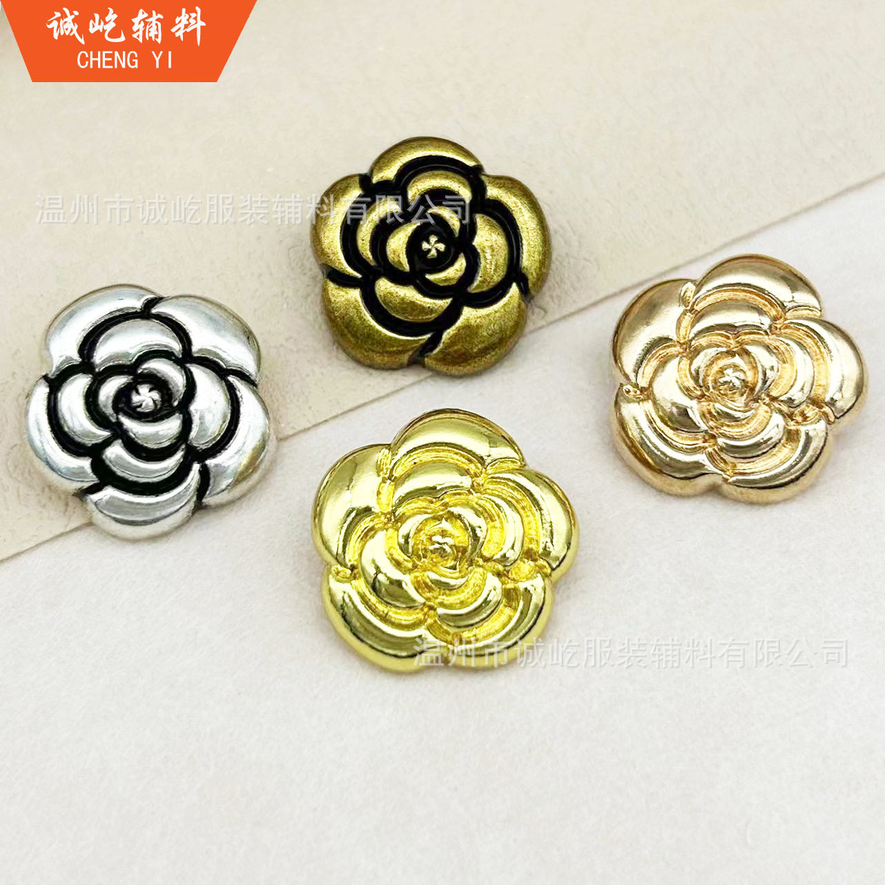 レトロなツバキの花の形の金属のボタンのオーバーのセーターのニットのオーバーの小さい香りの風の装飾のボタン