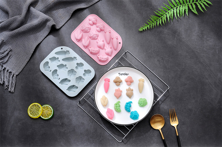 スポット12連6種類の異なる田園野菜造形シリコン金型焙煎ケーキ金型ドリップチョコレート金型