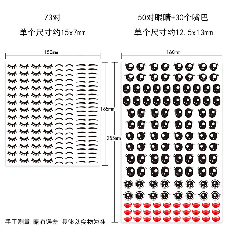 カラー 260目のステッカー50ペア1枚,260まつげシール1枚73ペア