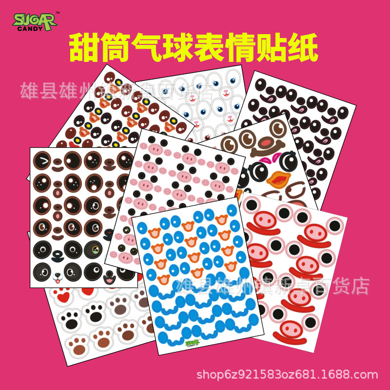 マジック長条風船diyトランペット人形表情シール漫画キャラクター少女人形目貼り絵汽球