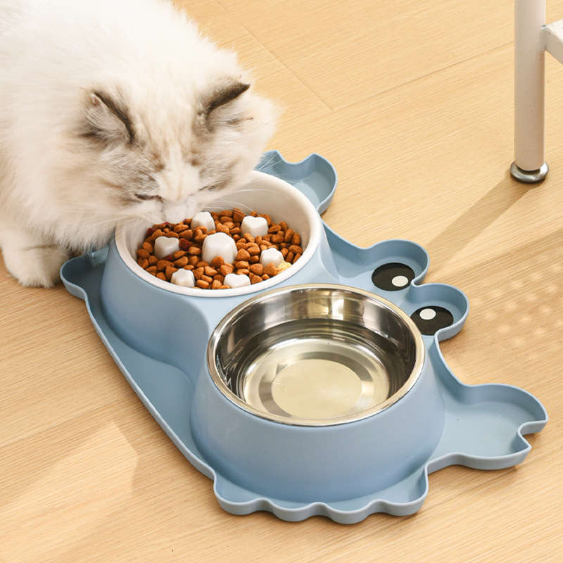 工場直販漫画カニペットダブルボウルステンレスボウルなめる猫と犬のボウル飲料水転倒防止フードボウル