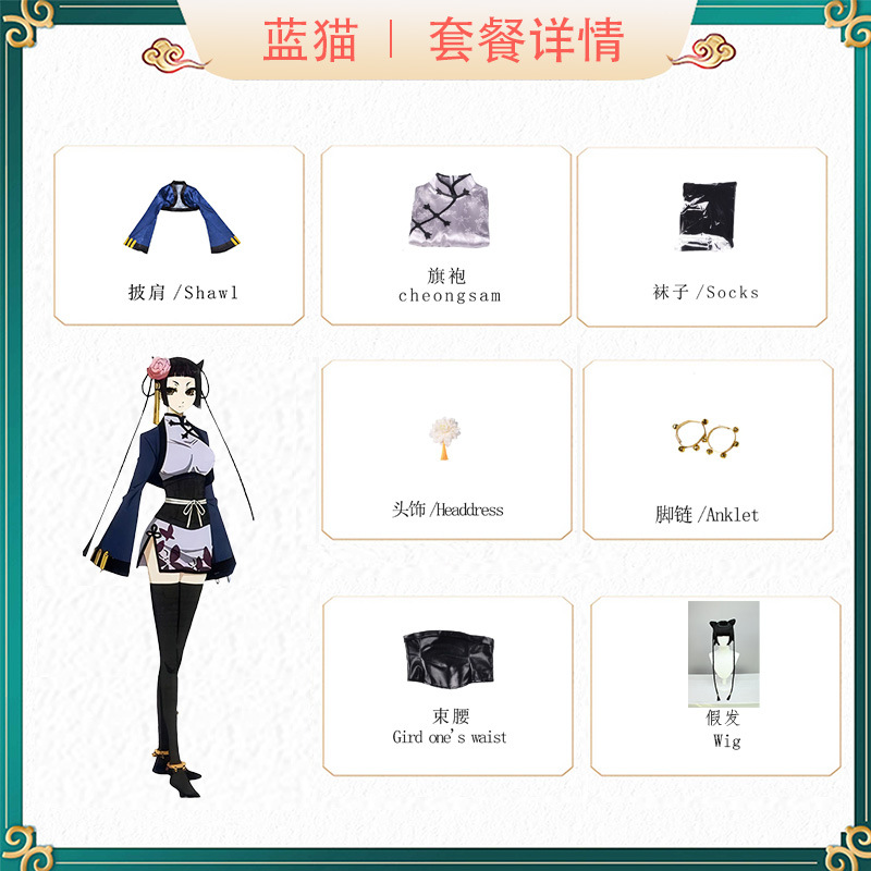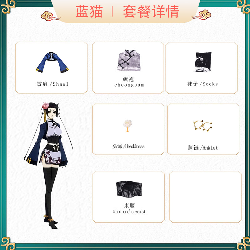 黒執事シャルル藍猫コスプレ衣装青猫チャイナドレスお姉さん少女漫展cos服女性オリジナルフルセット