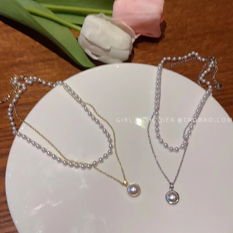 軽豪華小衆choker真珠ネックレス女性二重高級感insフランスレトロ気質鎖骨鎖首鎖
