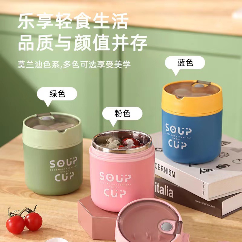 304ステンレス保温朝食カップ蓋付きスプーン便利サラリーマンカップ牛乳オート麦ひも付きスープカップ