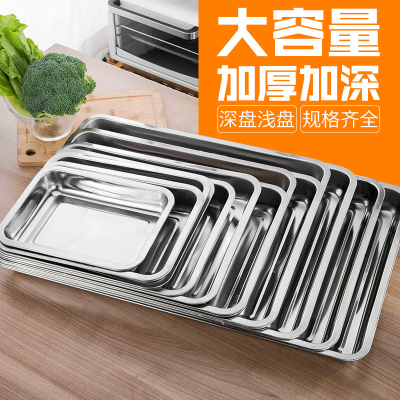 メーカー卸売り304ステンレストレー焼き皿長方形特厚蒸し皿焼き魚皿商用焼き