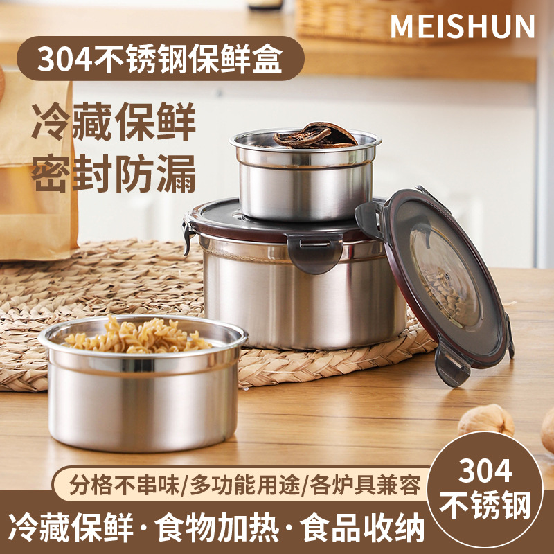 304食品級厚いステンレス保冷箱冷蔵庫密封蓋付き収納箱円形弁当箱弁当箱
