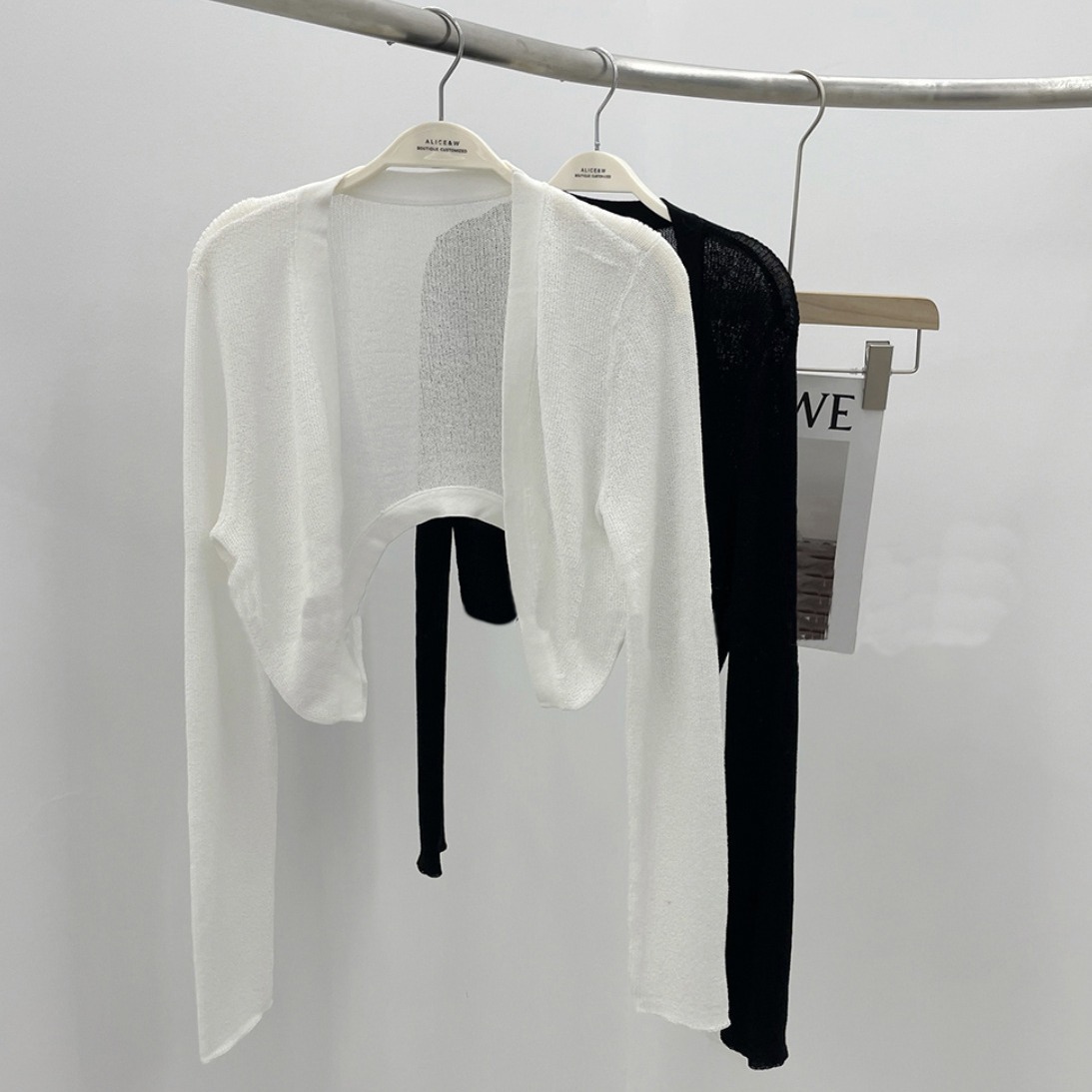 广州十三行高货!白色薄款镂空系带防晒衫针织开衫女宽松短款上衣