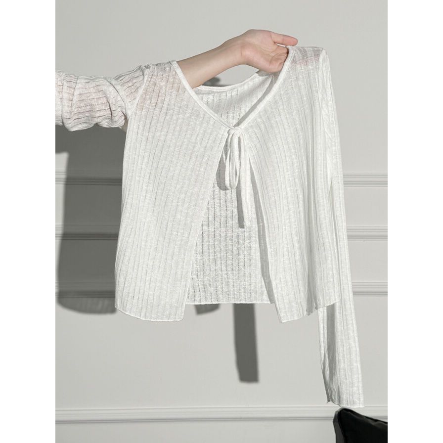 ニットの日焼け止めカーディガンの薄い女性2025の新型の夏はサスペンダーのスカートのショールのフランスの外でブラウスを掛けます。