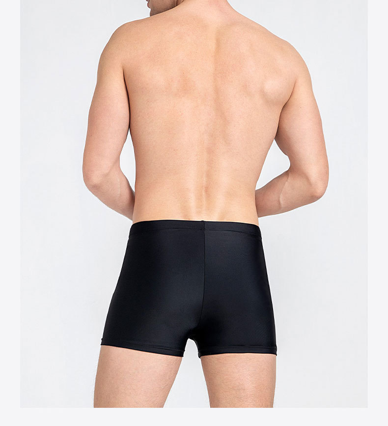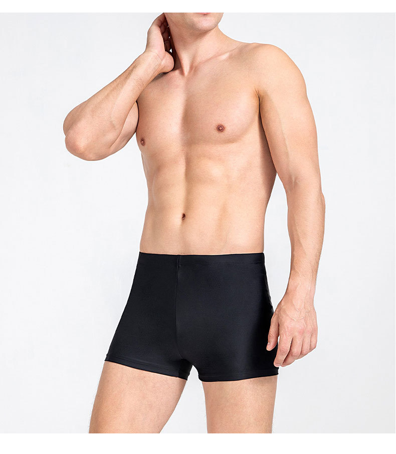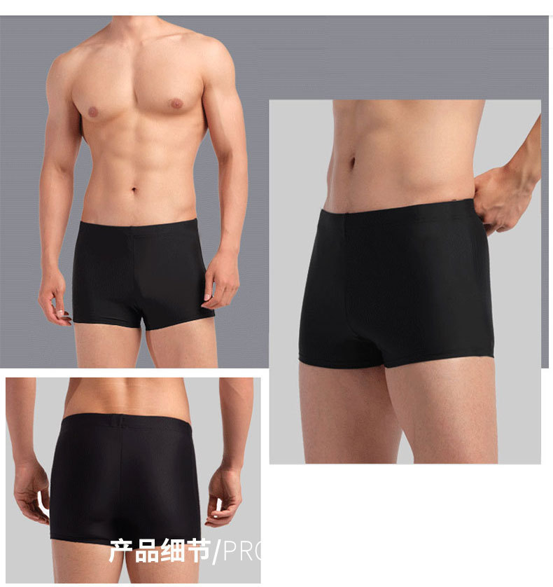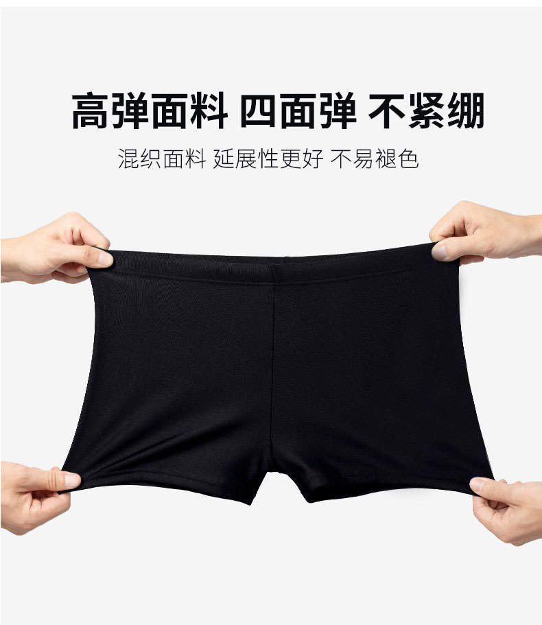 男性水泳パンツ平角ゆるい水泳パンツ純黒がビーチ温泉に入るファッション速乾水泳パンツ男性卸売り