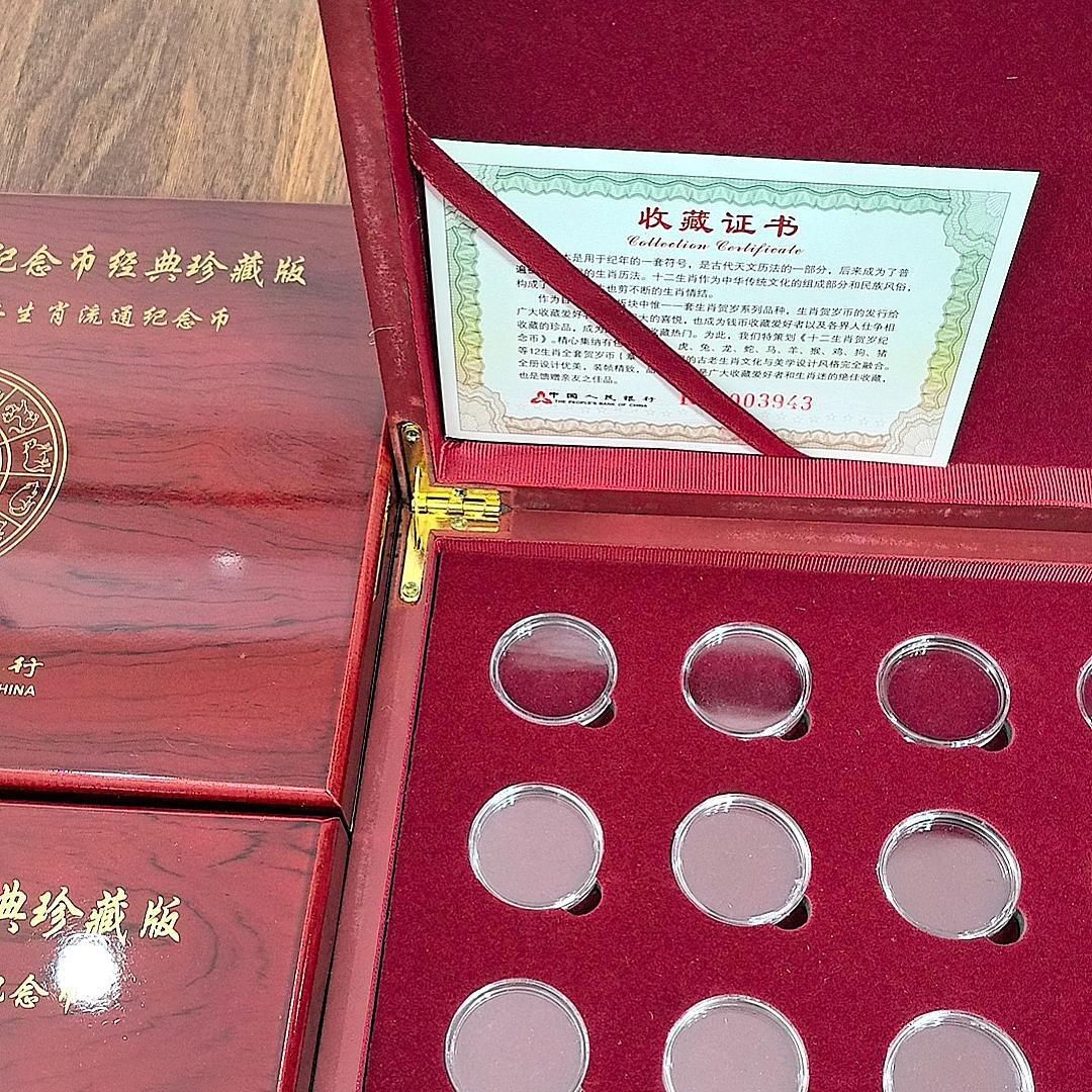 十二生肖木箱12枚27mm二輪生肖セット箱25mm一輪生肖記念貨幣保護収蔵箱