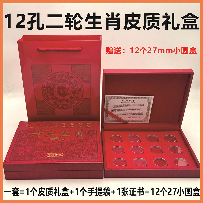12穴2輪干支革製ギフトボックス27mm12枚入り記念硬貨コレクションボックス10元硬貨用コインボックス