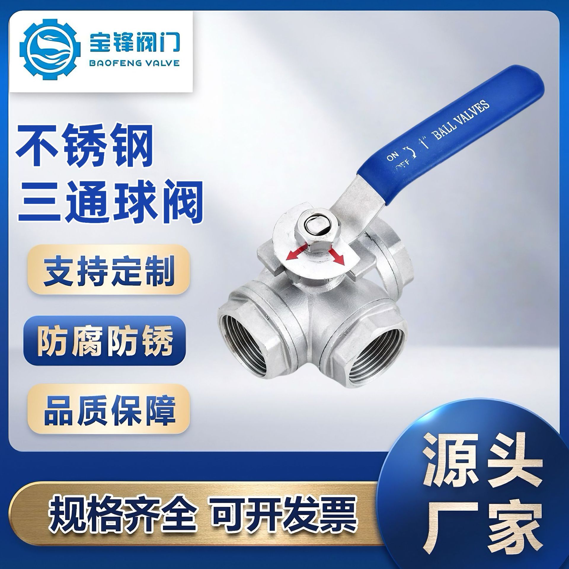 304ステンレスネジ留め三方ボールバルブT型/L型ネジ留め三方ボールバルブめねじDN15-50