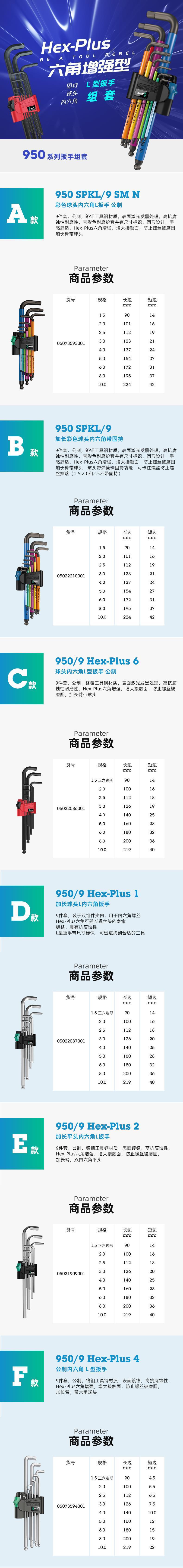 規格型番 Aカラー延長ボールヘッドlレンチ9セット05073593001,B型カラー固定延長ボールヘッドlレンチ9セット05022210001,Cボールヘッドレーザー黒ずみ内六角9点セット05022086001,Dボールヘッドクロムメッキ六角lレンチ9セット05022087001,E型平頭クロムメッキ六角lレンチ9セット05021909001,F型延長ボールヘッド短辺lレンチ9セット05073594001,G型延長平頭lレンチ固定付き9セット05135986001