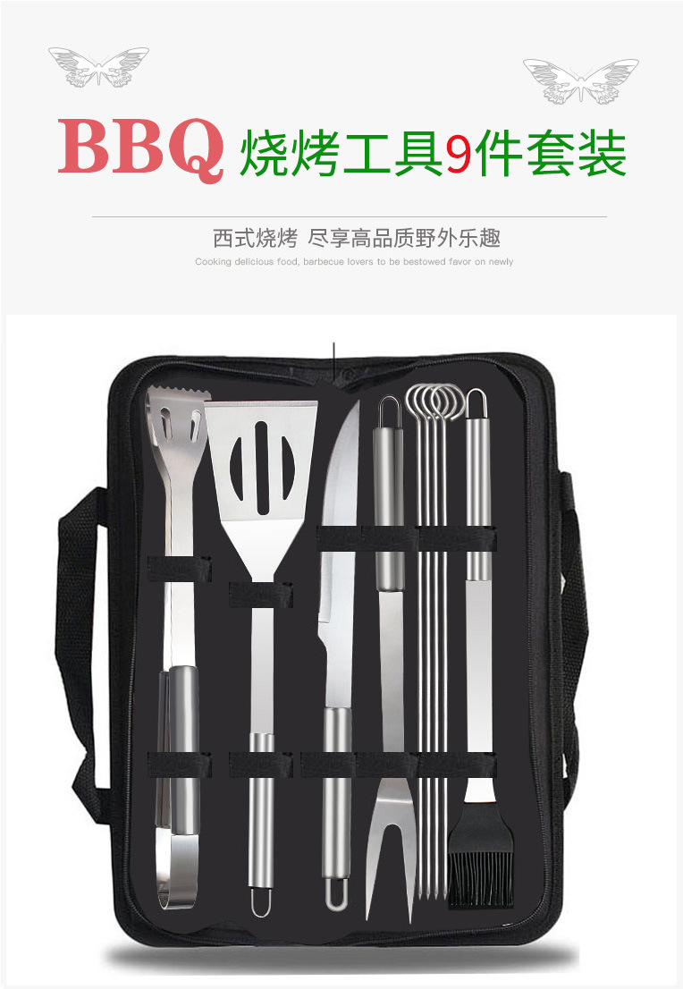 バーベキューツール布袋金9点セットステンレス材質焼き具セット