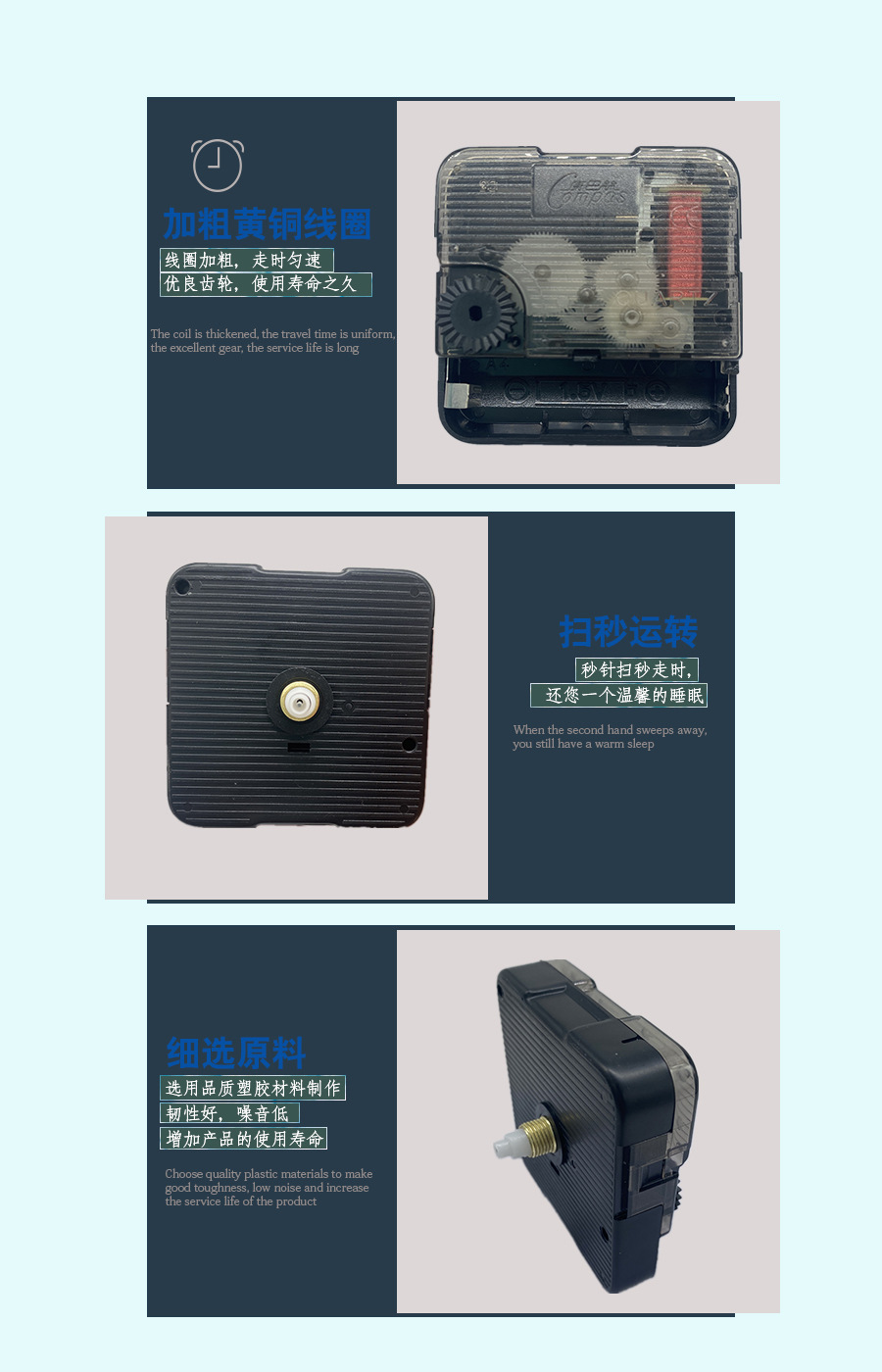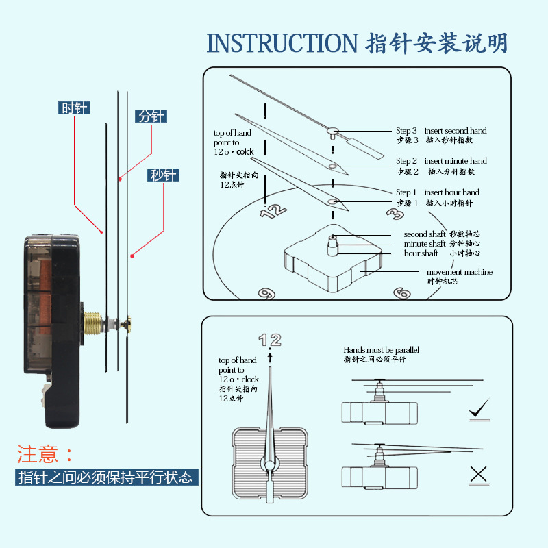 クロスボーダー電気商現物静音スキャン時計ムーブメントDIY時計ムーブメント金属指針ホーム掛け時計ムーブメント