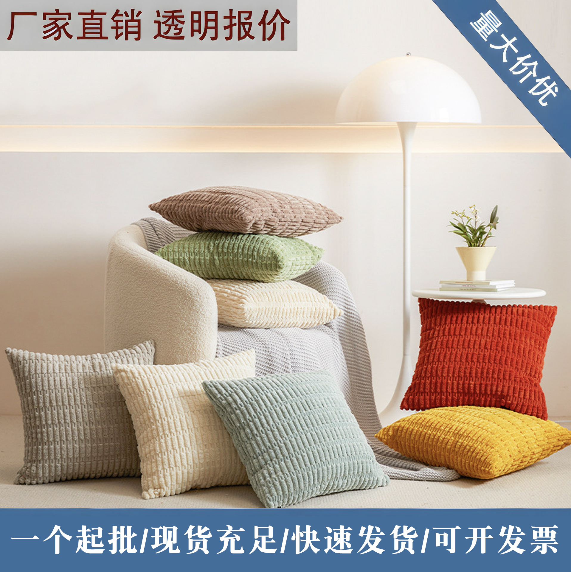 アマゾンの新しいコーデュロイ枕カバー、北欧風無地、家庭用正方形クッション、ソファ装飾用枕カバー