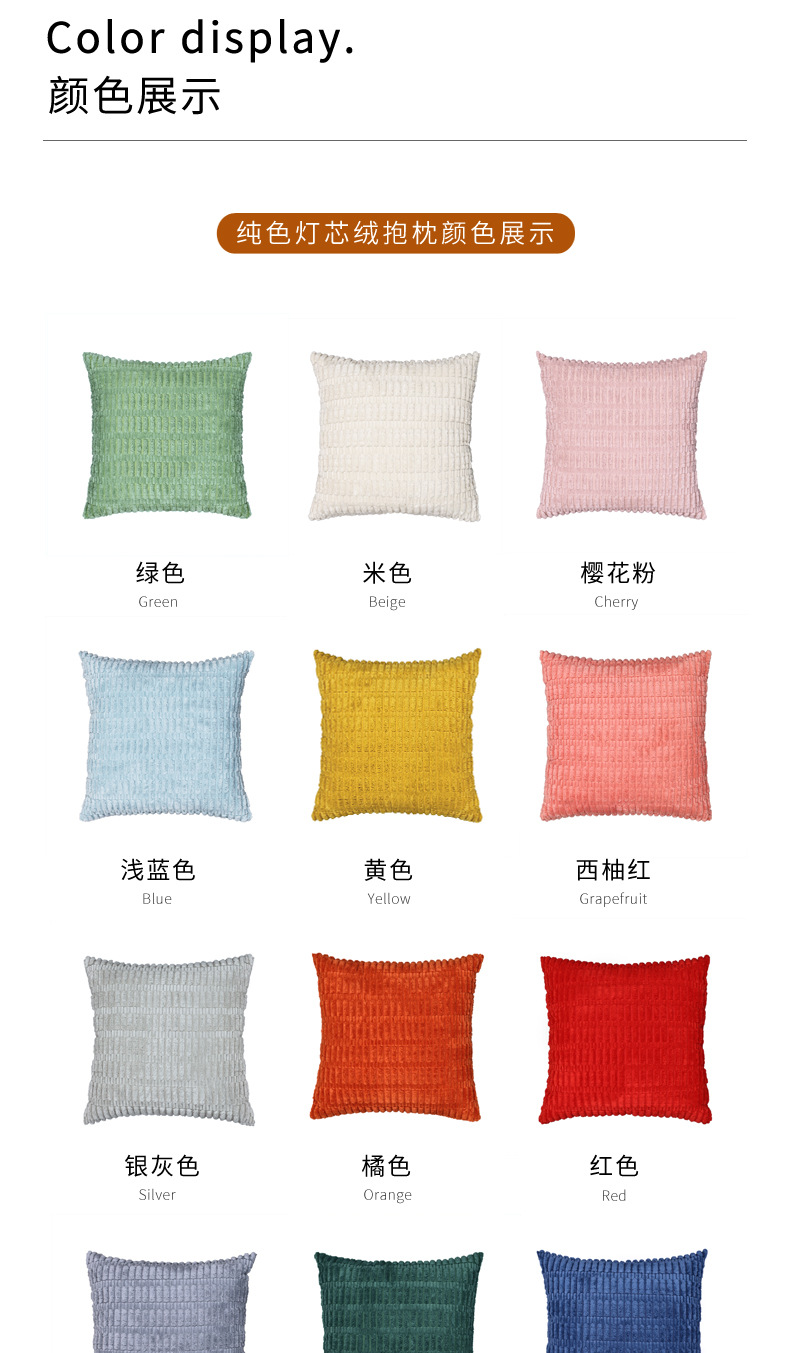 アマゾンの新型コーデュロイ抱き枕カバー北欧純色シンプルな四角いクッション家庭用ソファ飾り枕カバー