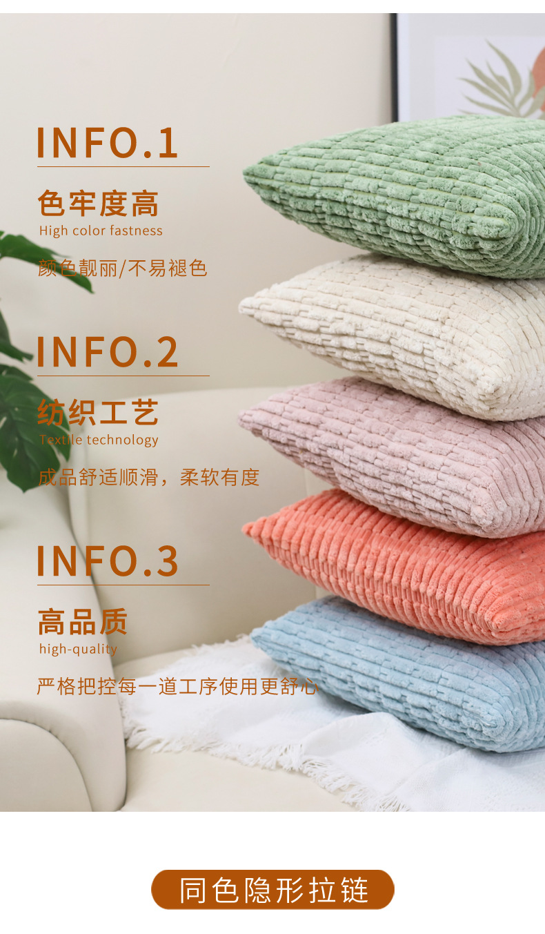 コーデュロイ枕北欧インシンプル小麦耳粒無地クッションカバークロスボーダーアマゾン人気ソファ枕