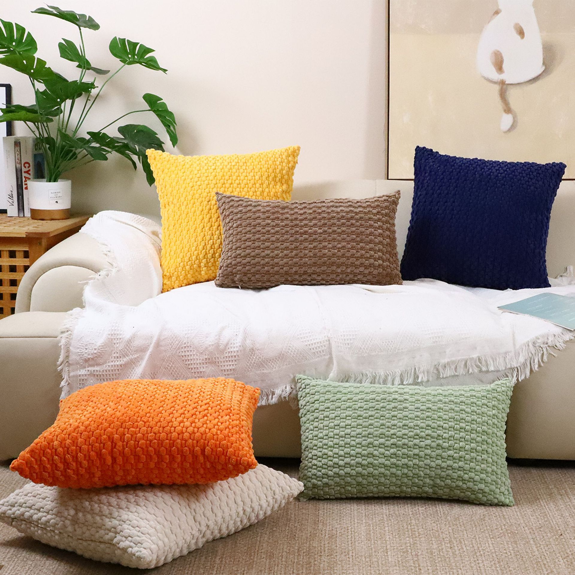 クロスボーダー コーデュロイ枕カバー(中身なし)ホーム用クッション、ベッドサイドクッションカバー、快適なソファ用コーンピール枕カバー