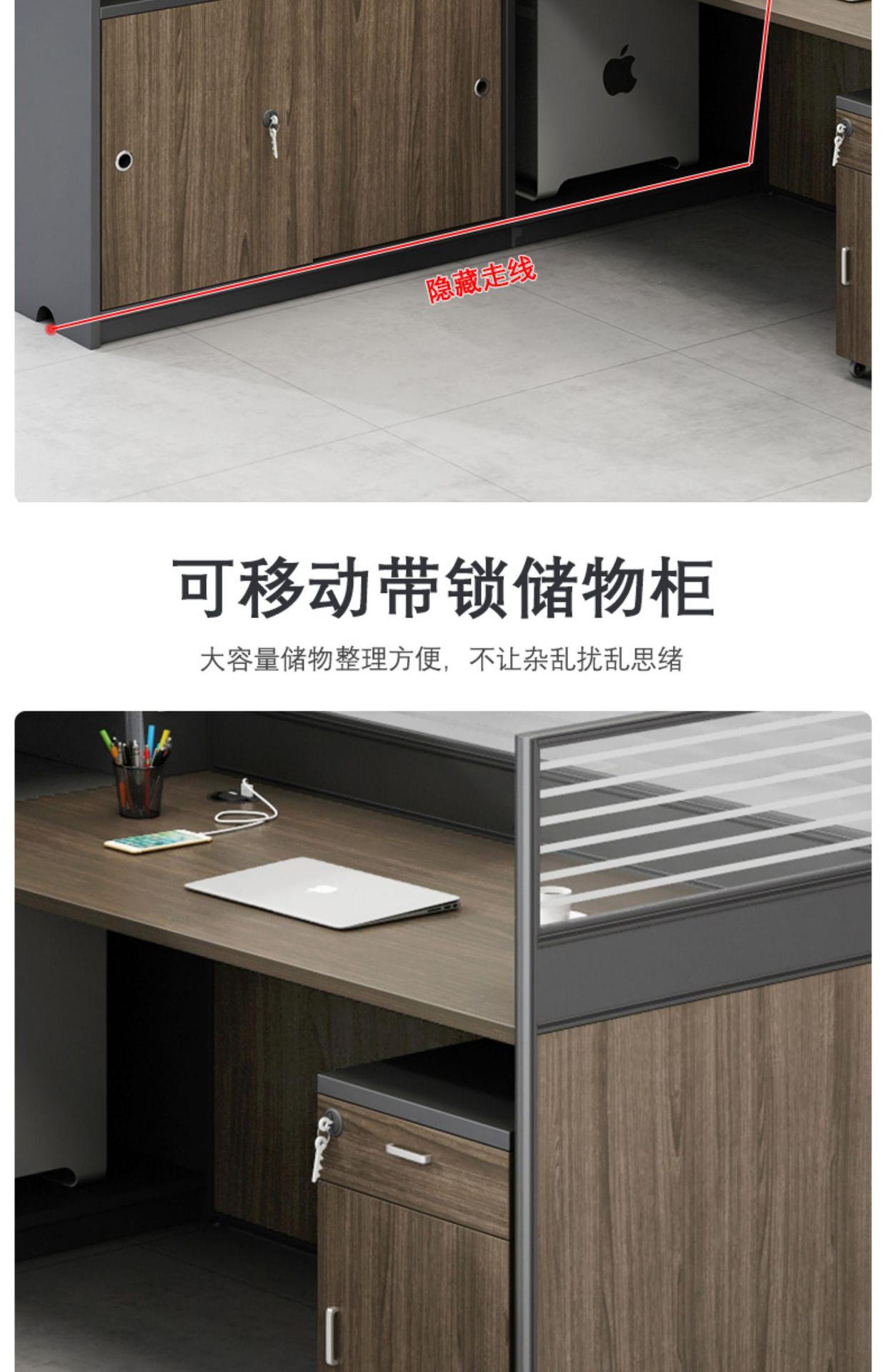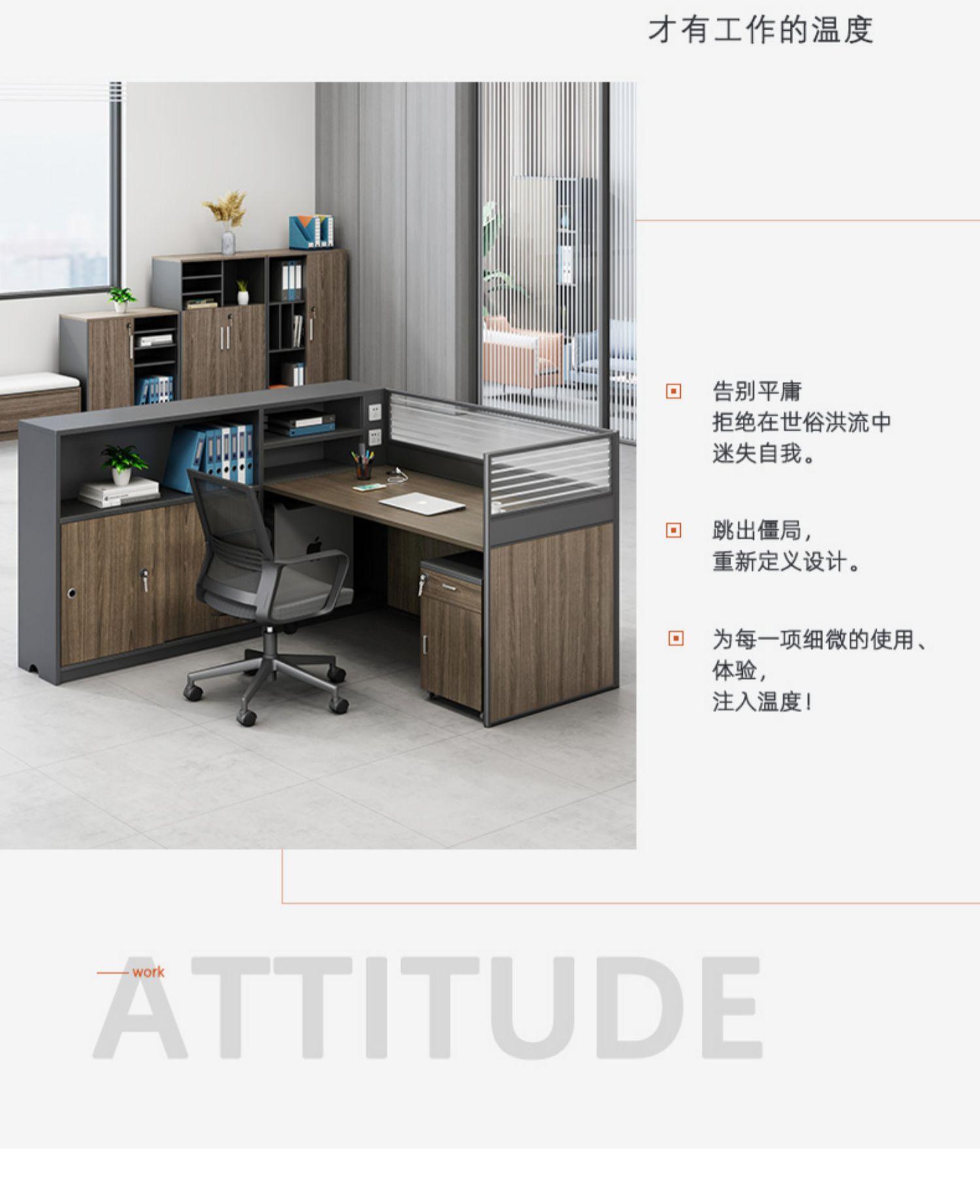 従業員の事務机と椅子の組み合わせは簡単で、現代の三人の事務机の事務室の財務室の屏風の事務机です。