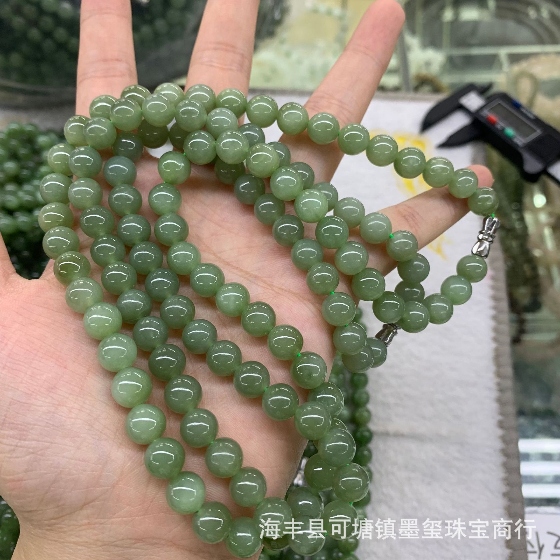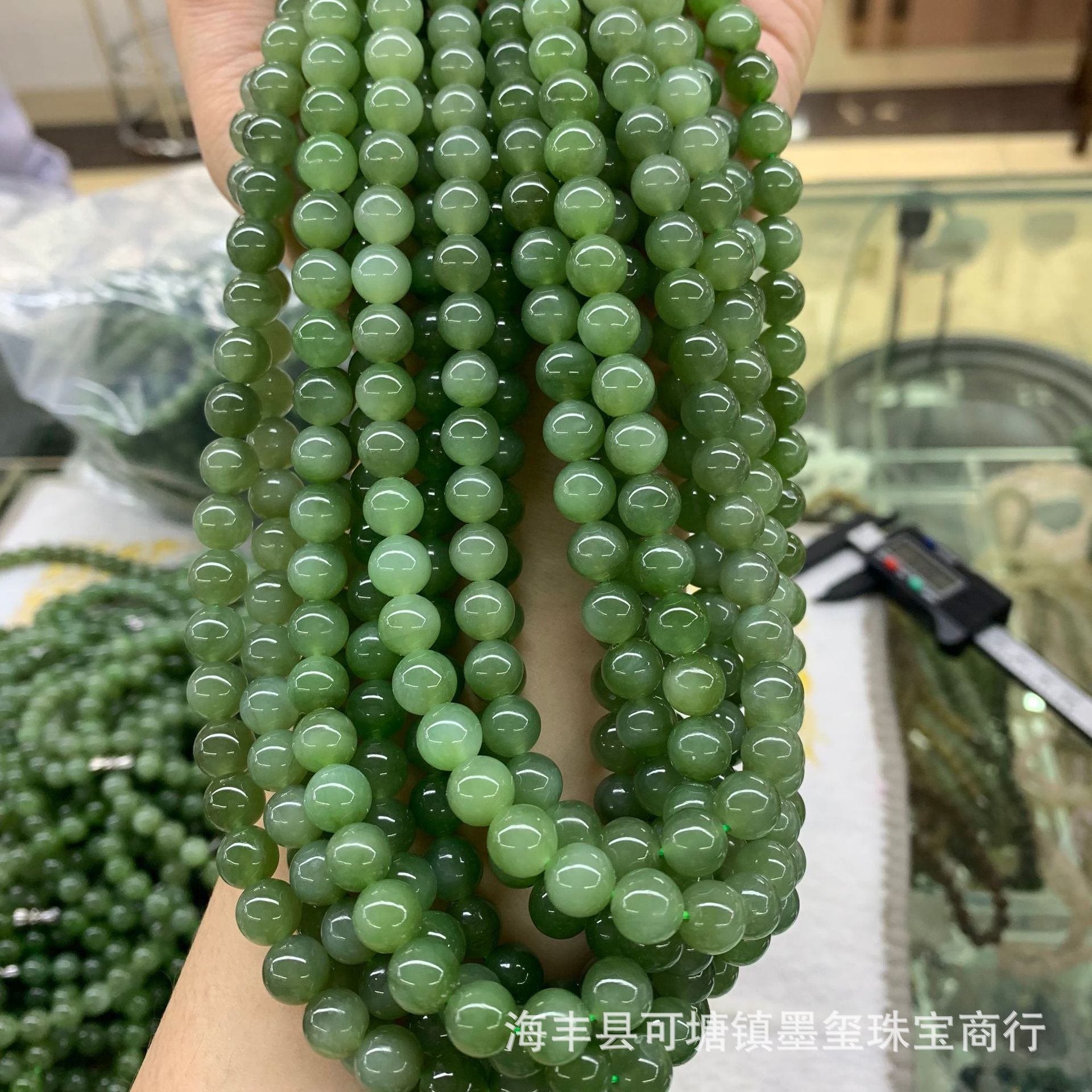 和田碧玉8mネックレス水頭足無黒diy陽緑円珠ストラップ散珠手串アクセサリー卸売り工場