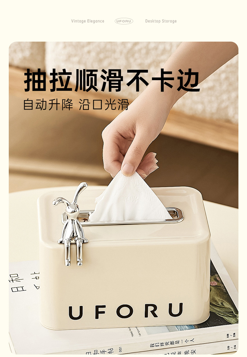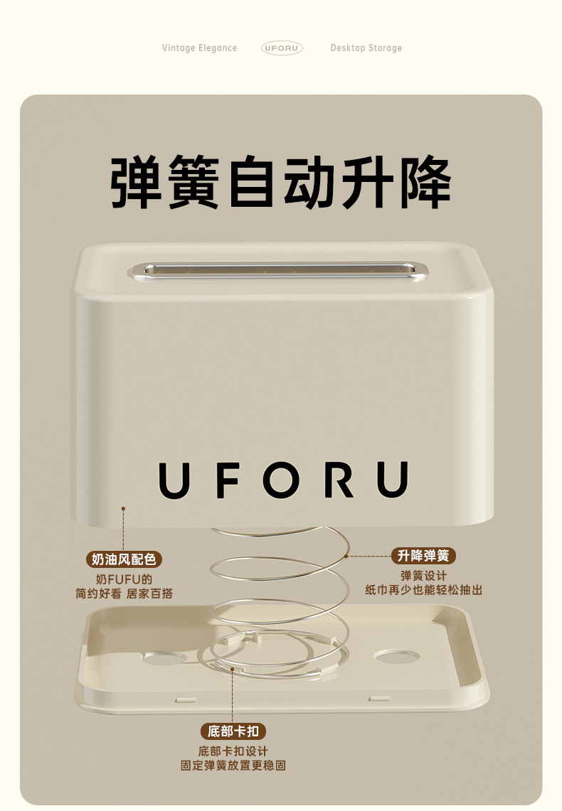 ティッシュボックスリビング高级感家庭用キッチン浴室ペーパーボックスuforu大容量スプリングリフト引き出しボックス